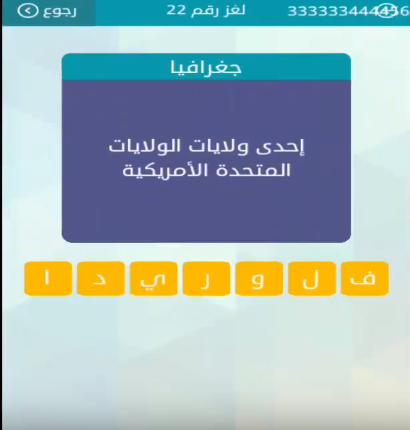 حل جواب احدى ولايات الولايات الامريكية المتحدة لغز رقم 22 من لعبة وصلة للمجموعة الثالثة صقور الإبدآع