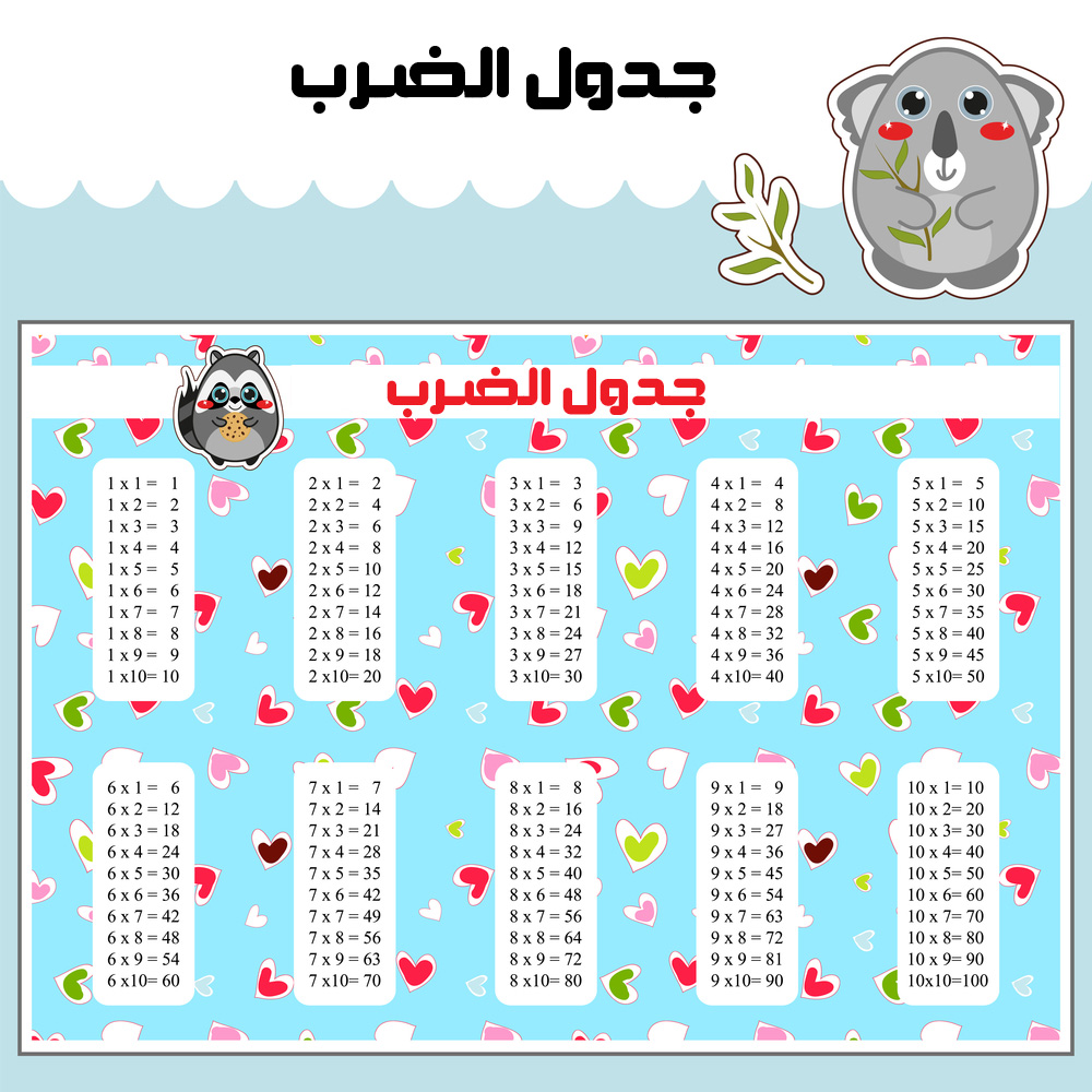 جاهز للطباعة جدول الضرب بالعربي للاطفال