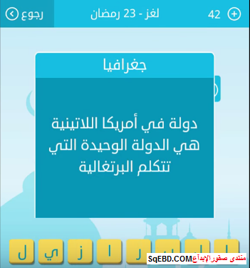 اجابة لغز دولة في أمريكا اللاتينية هي الدولة الوحيدة التي تتكلم البرتغالية 23 رمضان من لعبة رشفة صقور الإبدآع
