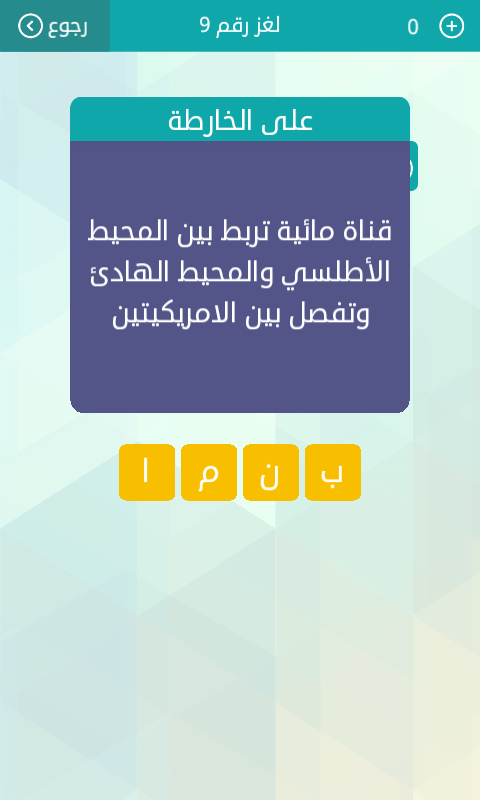 حلول لعبة وصلة للكلمات المتقاطعة جواب على الخارطة قناة مائية تفصل بين المحيط الاطلسي والهادي وبين الأمريكتين