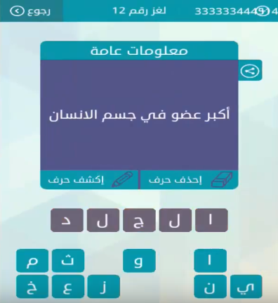 حل لغز اكبرعضو فى جسم الانسان لغز رقم 12 من لعبة وصلة للمجموعة الثانية صقور الإبدآع
