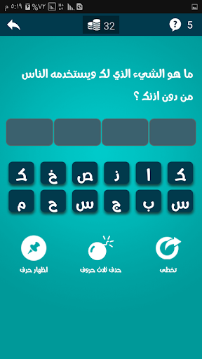حل سؤال ما هو الشيء الذي لك ويستخدمه الناس من دون اذنك مكون من اربعة احرف لغز رقم 68 لعبة الغاز ذكاء صقور الإبدآع