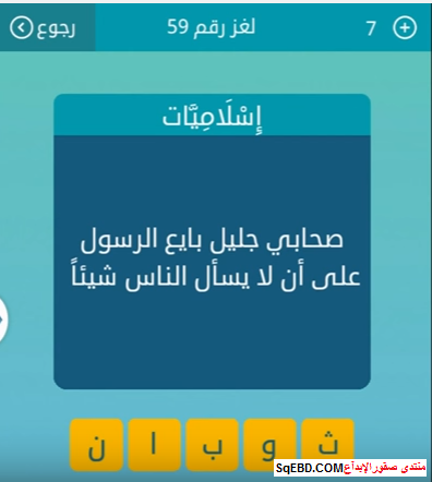 حل سؤال صحابي جليل بايع الرسول على ان لا يسال الناس شيئا مكون من 5 حروف من لعبة كلمات متقاطعة صقور الإبدآع