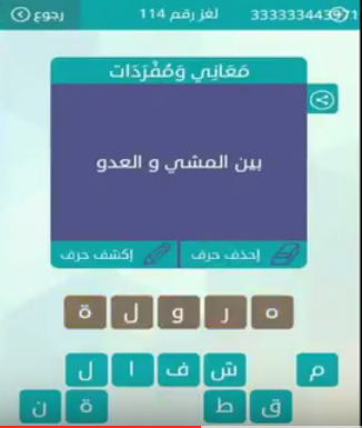 حل سؤال بين المشى والعدو لغز رقم 114 من لعبة وصلة فى المجموعة الثالثة عشر صقور الإبدآع