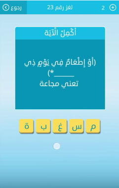 حل سؤال او اطعام فى يوم ذى تعنى مجاعة من لعبة رشفة لغز رقم 23 للمجموعة الثالثة صقور الإبدآع