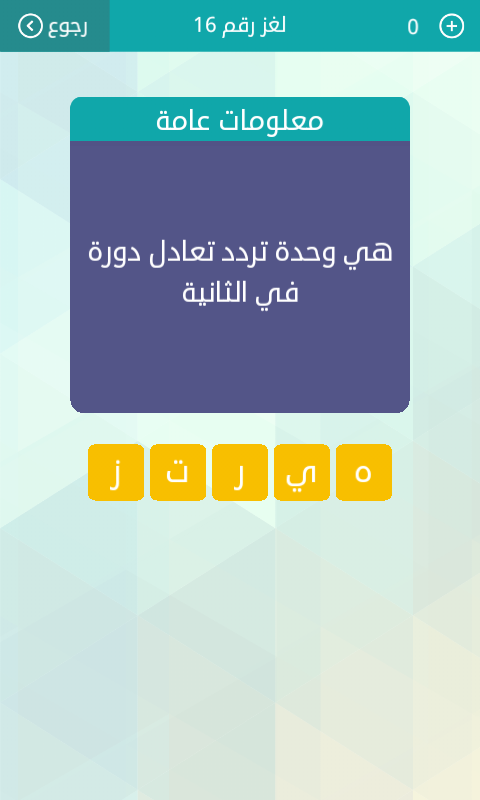 حل سؤال معلومات عامة هى وحدة تردد تعادل دورة فى الثانية لغز رقم 25 من المجموعة الثالثة من لعبة وصل صقور الإبدآع